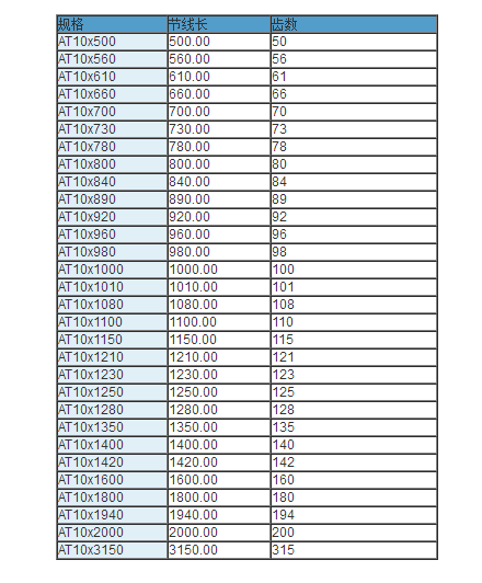 同步帶技術參數