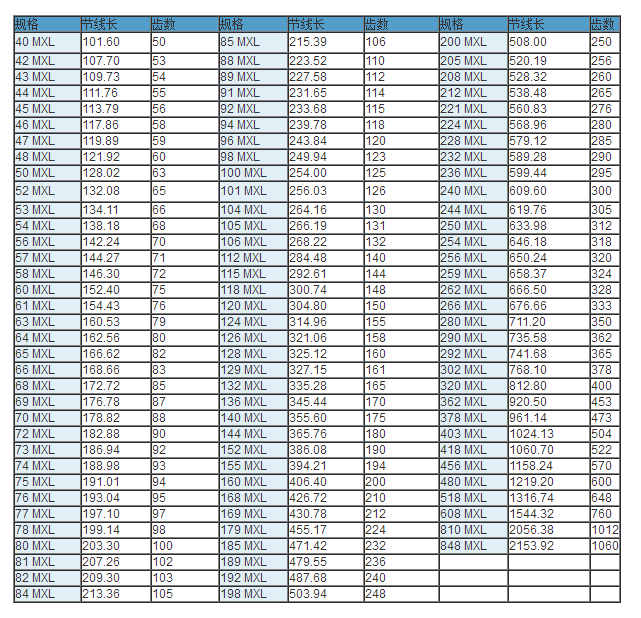 同步帶技術參數